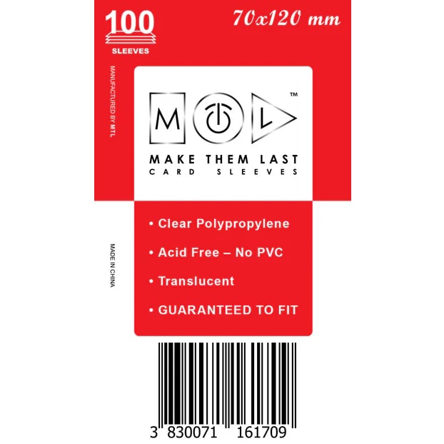 Sleeves are suitable for cards of size: 70 X 120 mm (cca. 2 3/4 X 4 23/32 inches)