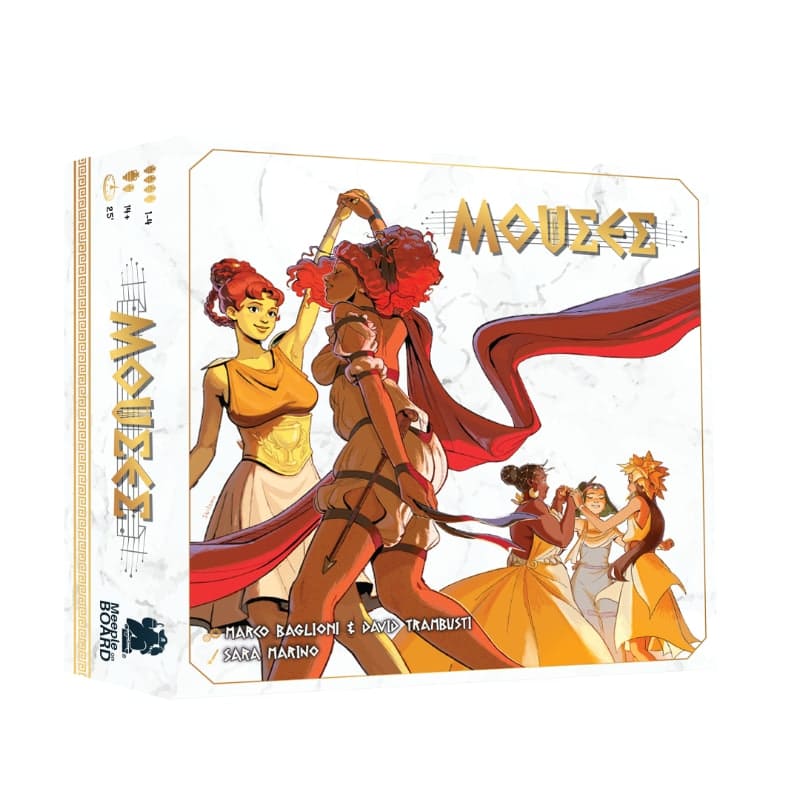 Meeple On Board’s edition contains the 6 game variants of the base game as well as the Divine Interventions expansion which introduces the rest of the Olympian pantheon who influence the Dance of Muses with their particular aims, for countless hours of fun.