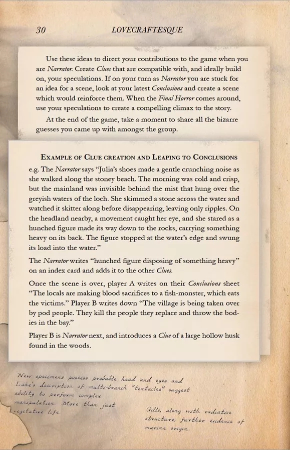 – All the players contribute clues to surprise and creep each other out.